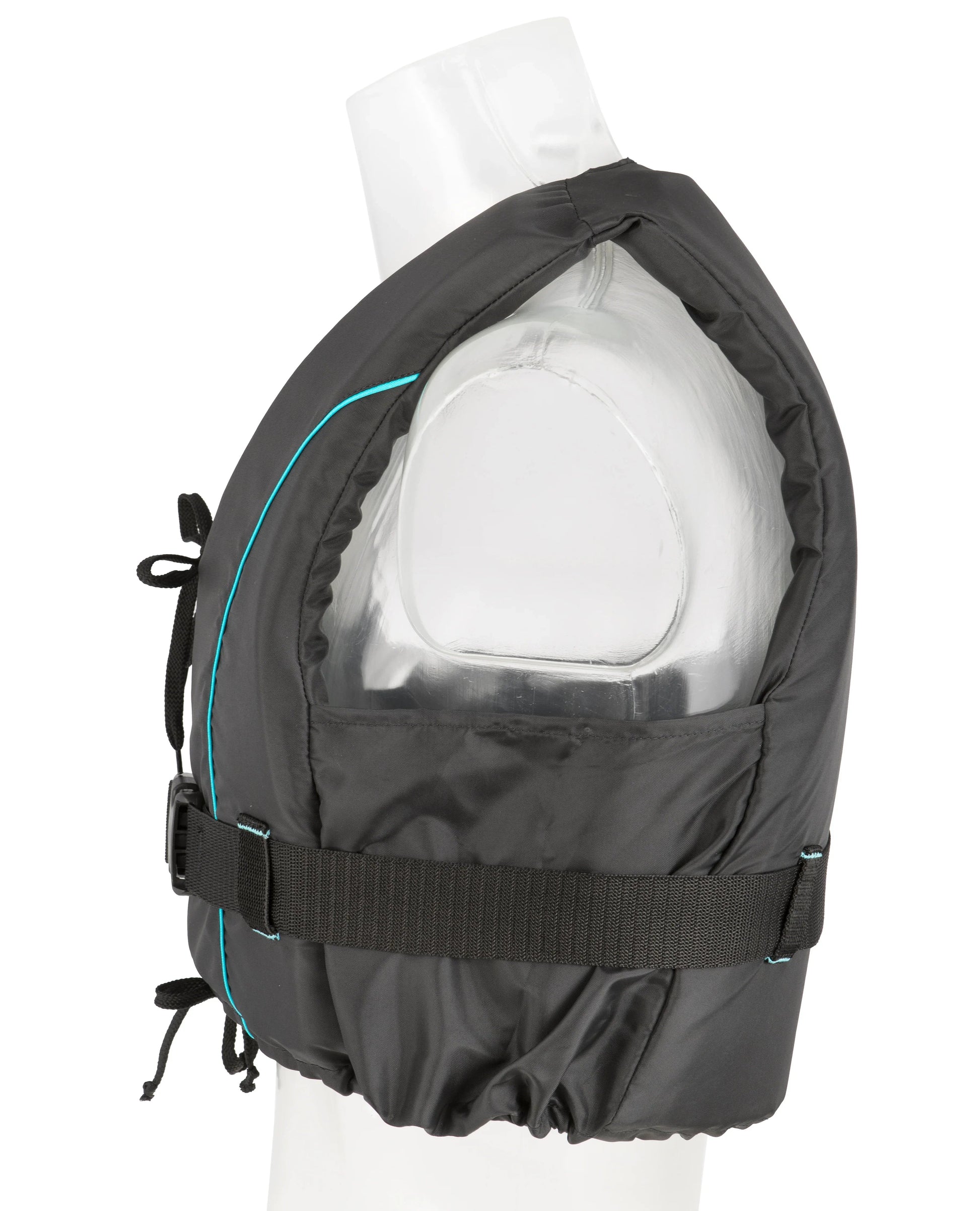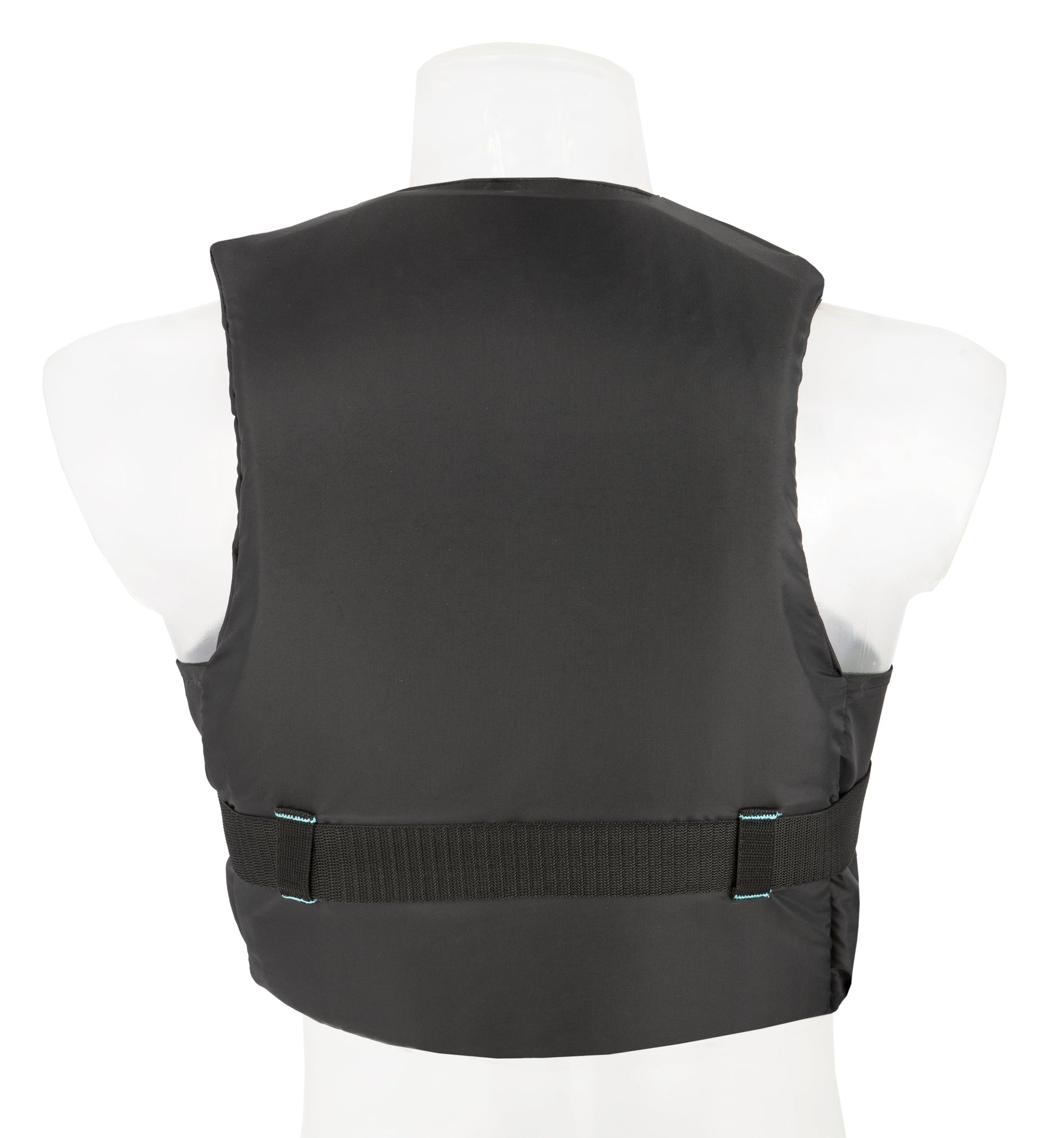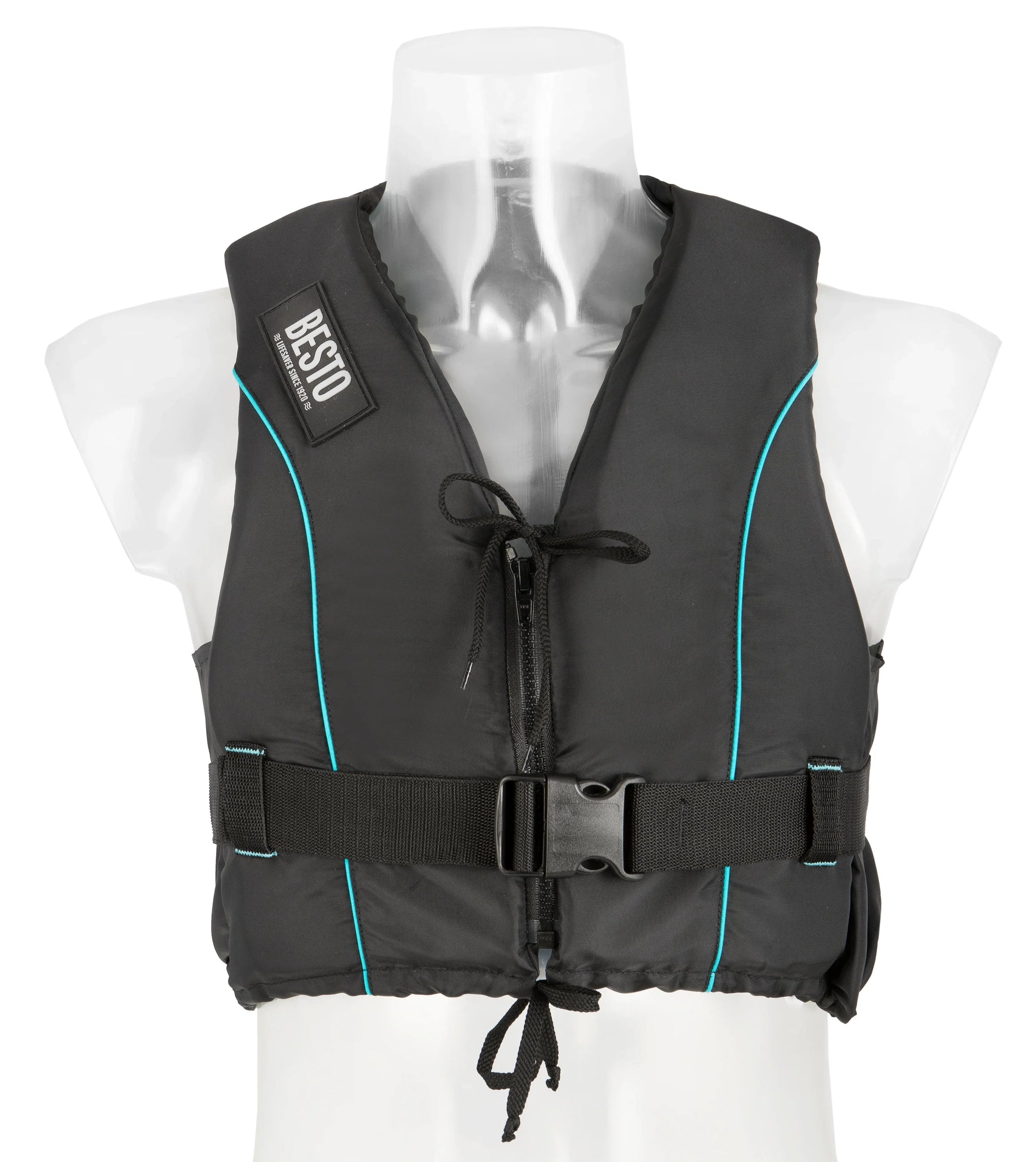 Besto Dinghy Zipper 50 N buoyancy aid in all black with aqua striping - size Medium for 50-60 kg (110-132 lb).