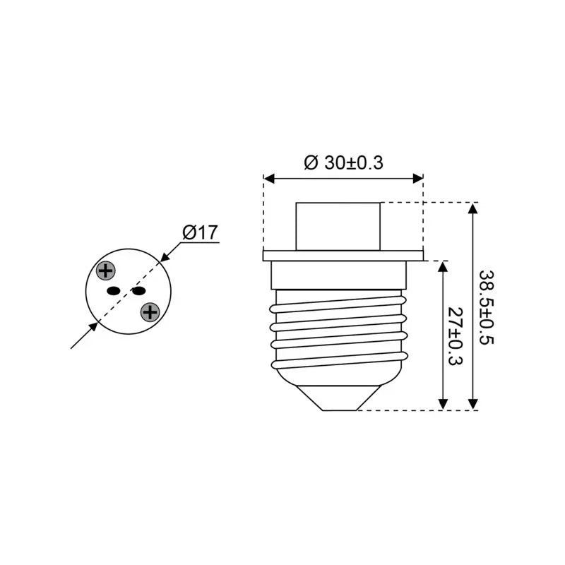 - Socket: E27 screw base (fits E27 holder) to G4 female socket
